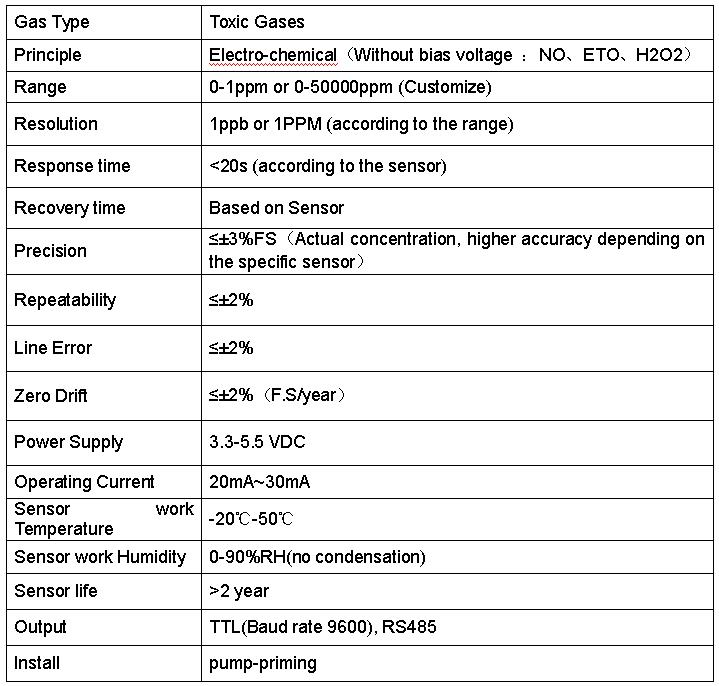 T series Intelligent Pump-priming Type Toxic Gas sensor Module